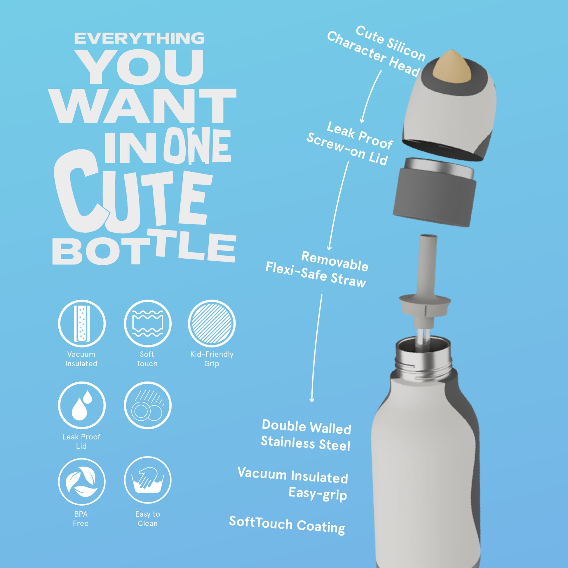 Mała, zgrabna i z osobowością. Bestie to butelka, której po prostu nie da się nie lubić! Pokochały ją dzieci i rodzice. Dzięki elastycznym, wyjmowanym silikonowym słomkom picie jest łatwe i przyjemne.